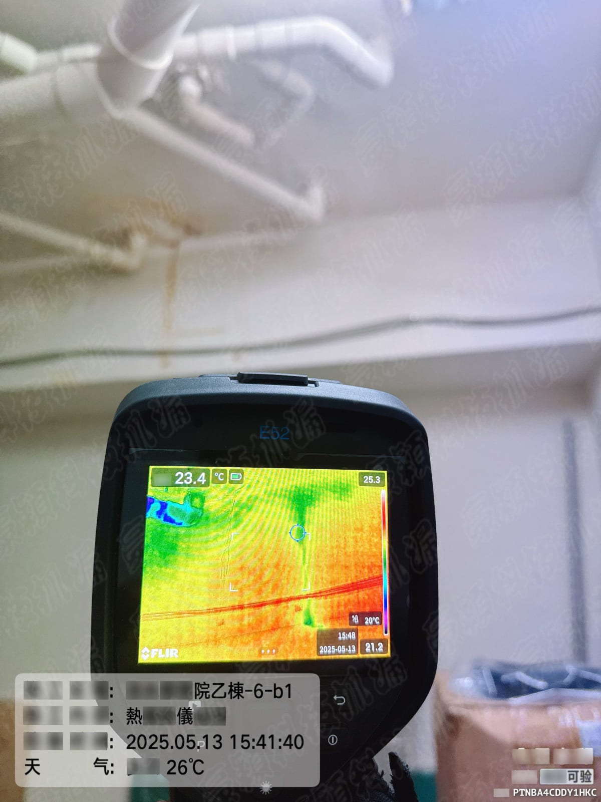 | 我們請樓上住戶短暫用水,觀察該區域的熱影像是否有動態變化。結果發現,當上方浴室排水時,那道藍色陰影的邊緣開始產生微弱的熱擾動,這成為了決定性的證據。 |